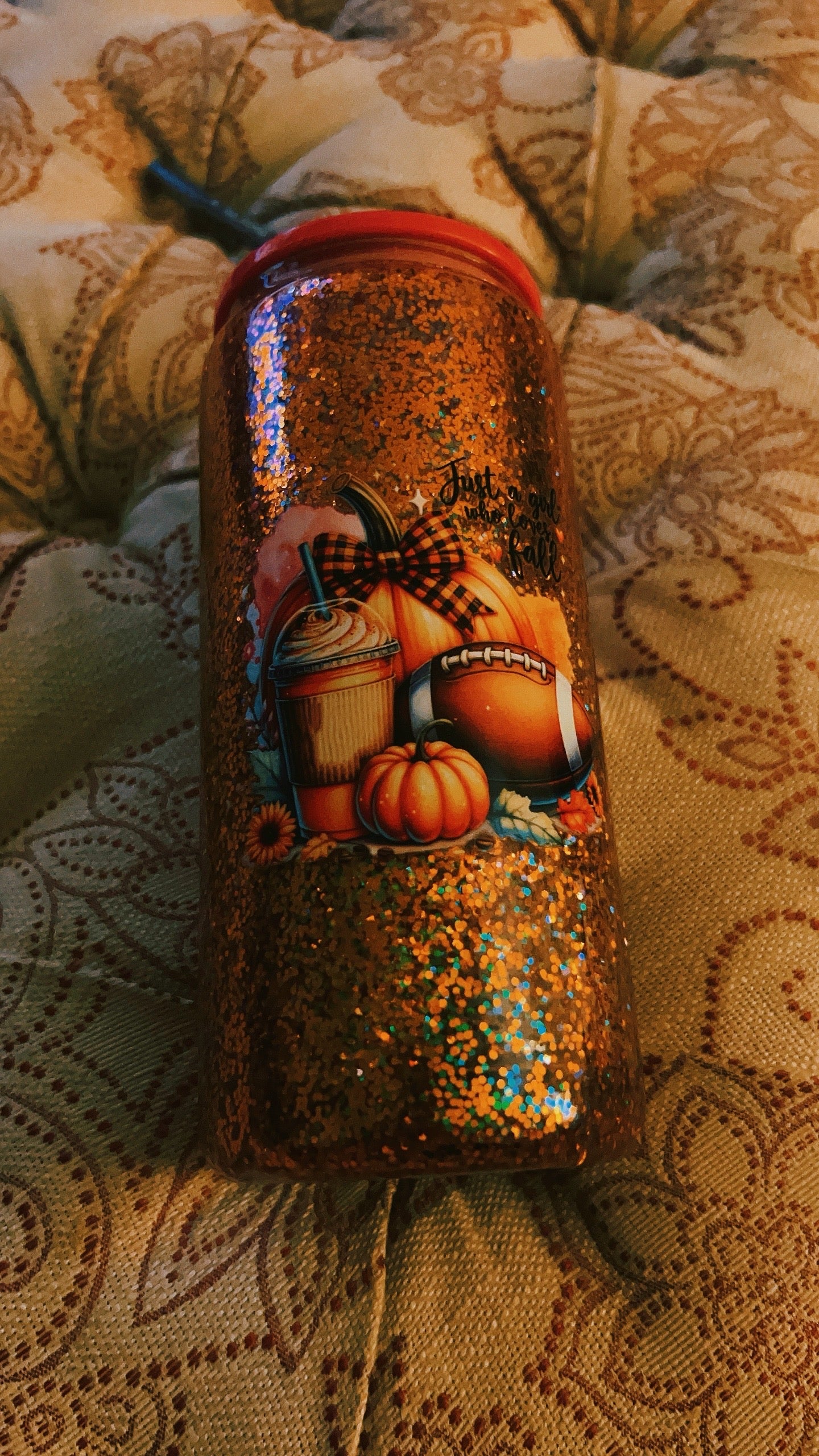 Pre made glitter snow globe Football 🏈, pumpkins 🎃, lattes ☕️ yeah🙂↕️ that sounds like a fall I can get behind